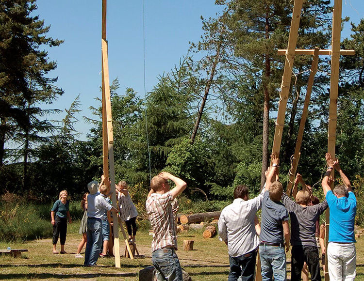 Grupperne bliver sat i gang på samme tid og står ved siden af hinanden, så de kan følge med i, hvor langt modstanderholdende er kommet. Det hæver stressniveauet. Grupperne skal på fastsat tid konstruere og bygge en konstruktion, der kan bære hele teamet. Konstruktionen skal være hævet 50 cm over jorden. Grupperne skal, inden de bygger, aftale taktik og fremgangsmåde.
